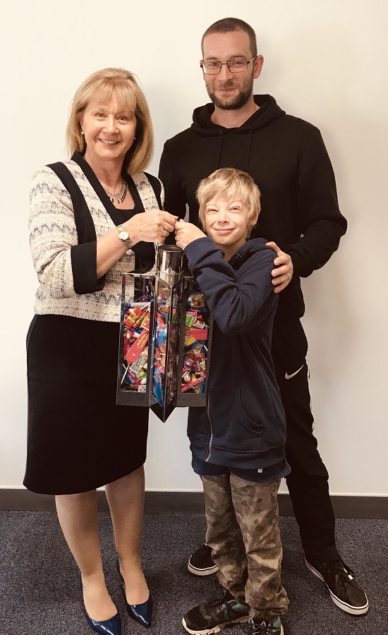 Billy’s brother looks more than happy too accept the sweets on Billy’s behalf!