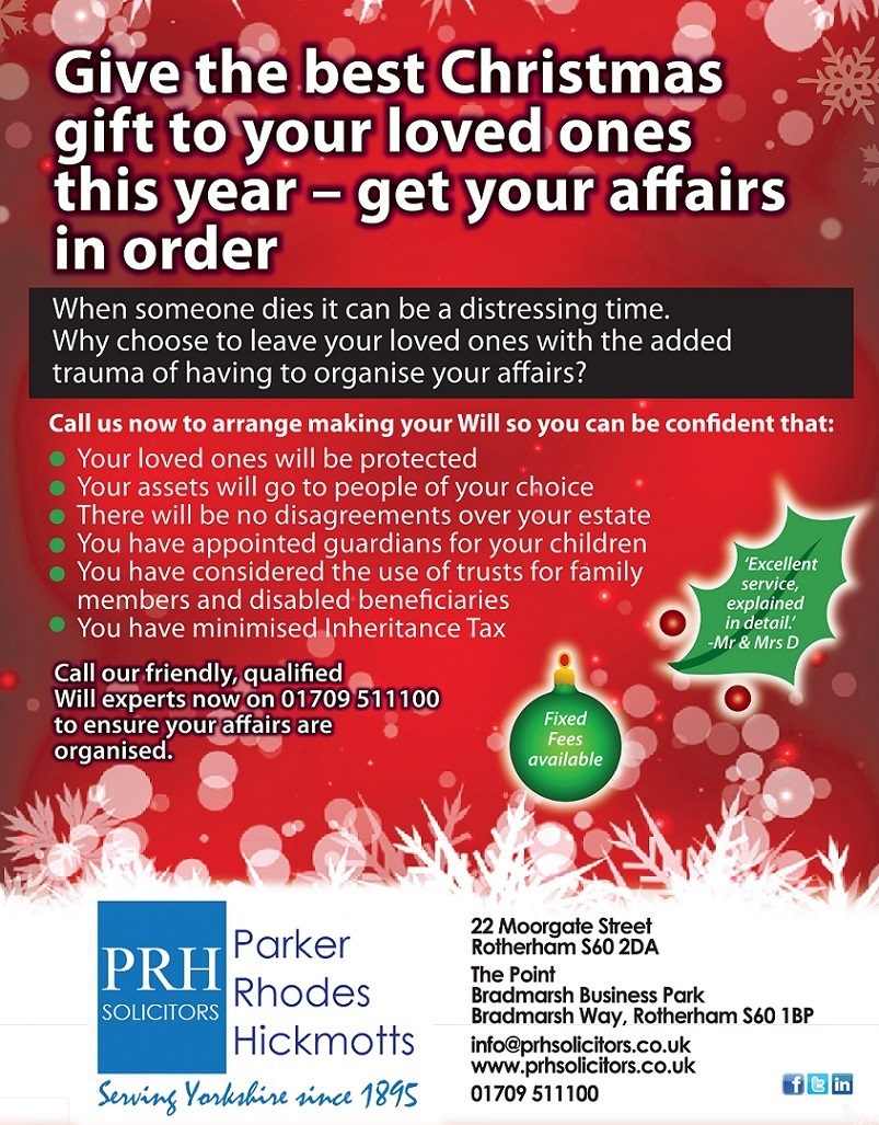 A Will allows you to protect young or vulnerable beneficiaries, to choose appropriate people to manage your affairs and to specify your funeral wishes. Making a Will is a simple, inexpensive process and gives you the certainty of knowing that arrangements are in place so that your wishes are followed. Whilst it may not be a conventional Christmas gift what better time to think about protection for family and loved ones?